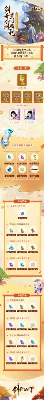游戏为大家准备了海量的福利,,,,包括上线即可获得的全渠道预约礼包、、、十连抽等福利,,输入密令“JK666”、、、、“JK888”即可领取紫色弟子,,,,达到金丹期后还有功法宝箱可领,,,助力全宗上下实力提升……所有奖励总价值超过648元,,,,而邀请好友一起体验,,更可以获得额外的奖励哦~