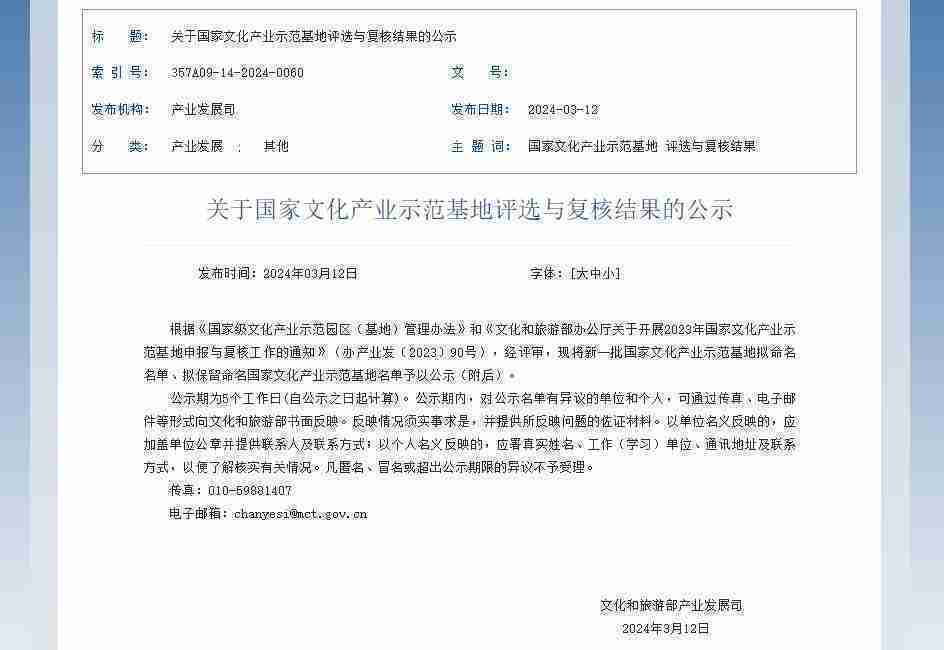公司新闻 新一批国家文化产业示范基地公示,,,,918.com成功入围